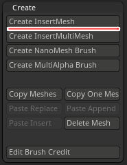 Brush>Create>Create Insert Mesh(※Brushパレット下部のCreate Insert Meshでも可))