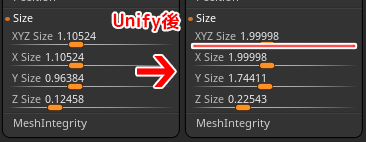 するとTool>Geometry>Sizeの値がおおよそ2になります。
