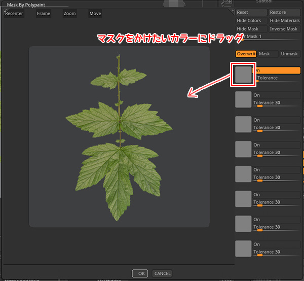 Tool>Masking>Mask By Color>Mask By Polypaintで背景の部分にマスクを生成します。