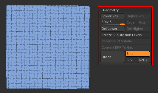- Tool>Geometry>DvideでSdivを5ぐらいに分割します。