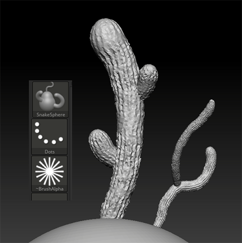 SculptrisProモードでもブラシによってはSculptrisの機能たるテッセレーション(※)が働かないブラシもあります。それらを見分けることができますね。