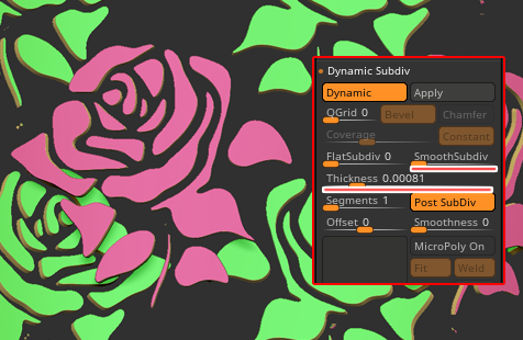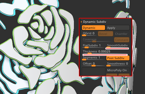 縁のSubtoolも同様に、ダイナミックサブディビジョンで厚みをつけてメッシュ化しておきます。