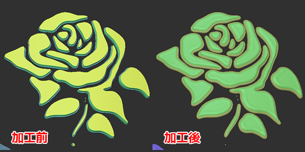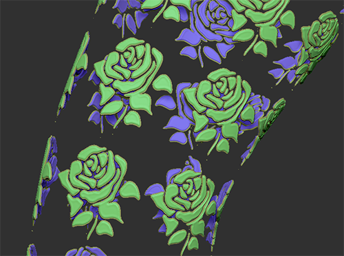 ここまで出来たらSubToolをDuplicateし複製を作成し、片方はバラのデザイン部分のみ、もう片方は縁取り部分を残し、非表示にしDelHiddenで不要なメッシュを削除します。
