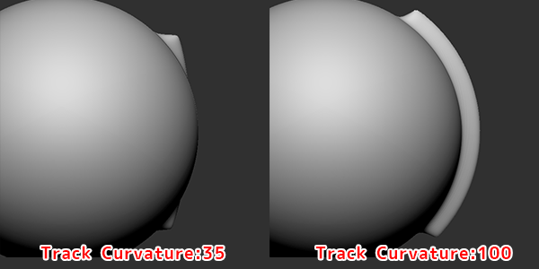 球体など曲線に描く場合はTrack Curvatureの数値を上げます