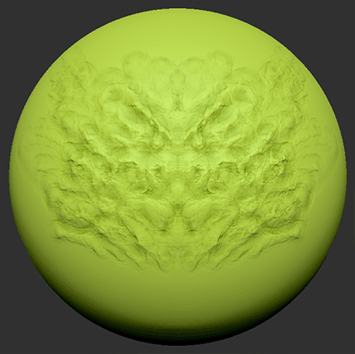 ZSub又はAlt キーを押しながらメッシュにスカルプトすると、厚さは元のメッシュの表面から内側に押し込まれます。