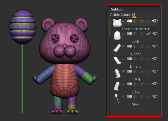 複数のSubToolを持っているモデルを1Toolにすることなく、まとめてポージングできるプラグインTransepose Masterのご紹介です。
