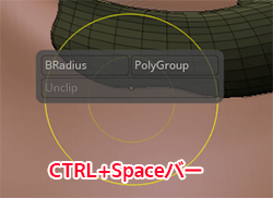 Brush> Clip Brush Modifiers>Brush Radius(BRadius)をONにすることで、TrimCurveブラシでモデルの一部を抽出又は削除することができます。