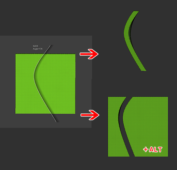 動作はClipブラシと似ていますが、Clipブラシはポリゴンの押しつぶし、Trimeブラシはポリゴンを削除するので違いにご注意下さい。