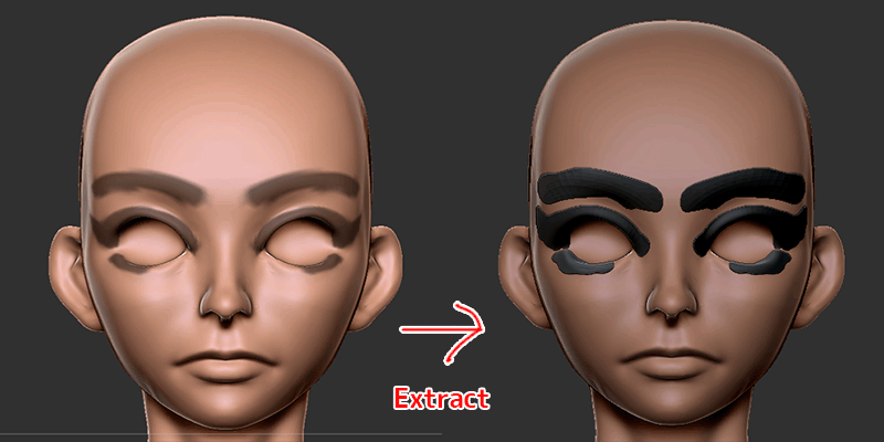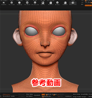 ZRemesherによる顔のリメッシュとExtractやClipBrushを使用した眉毛などの作成