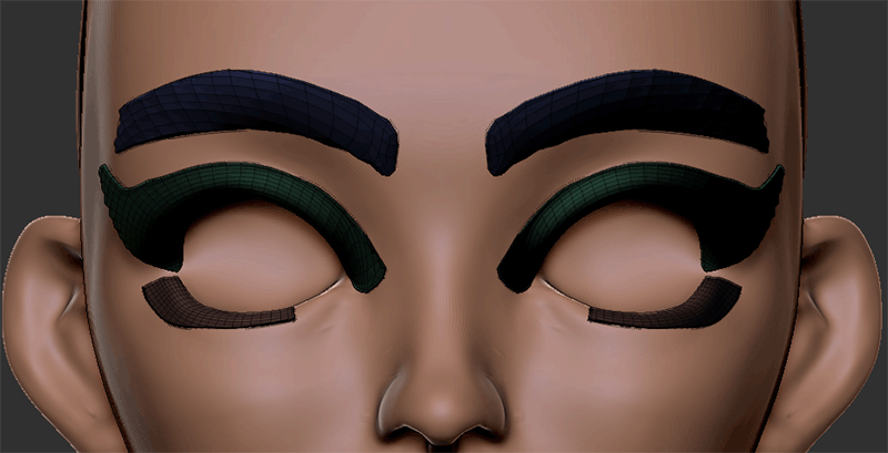 ZRemesherでリメッシュを行い、マスクを使って眉毛や睫毛のベースメッシュを作成していきます