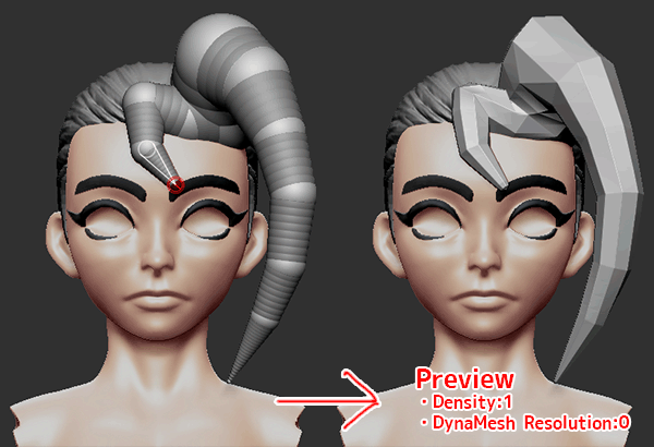 ZRemesherによる顔のリメッシュとExtractやClipBrushを使用した眉毛などの作成