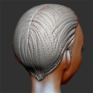 前回作成したベースの髪の毛にTopologyBrushでカーブを引いていきます