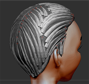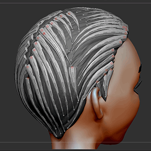頭制作の続き。前半はExtractを利用した髪の毛のベースメッシュの作成とZSphereを使った前髪の後半カーブブラシを利用した髪の毛作成です。