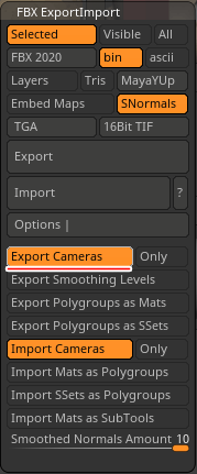 ZBrushカメラを他のアプリケーションにエクスポートしたり、他のアプリケーションからインポートしたりするには、2つの方法があります。