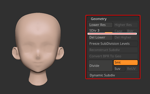 - サブディビジョンレベル(SDiv)を一番高い値に設定します