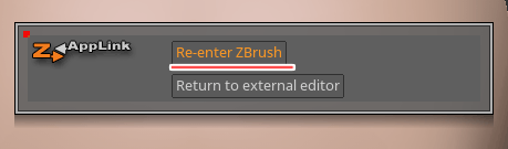 - ZBrushに戻ります。すると画面上にこんなポップアップが現れるのでRe-enter ZBrushを選択