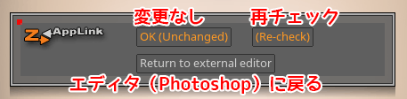 しっかり上書き保存しようZBrushに戻った際にこんなポップアップが出た際は、編集したファイルが保存されていない可能性があります。Return to external editorを押してphotoshopに戻り、再度上書き保存してください
