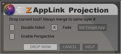 - ビューの登録が終わったらZApplinkを押します。ポップアップで必要な設定が終わったらDROP NOWを押し、Photoshopに送信