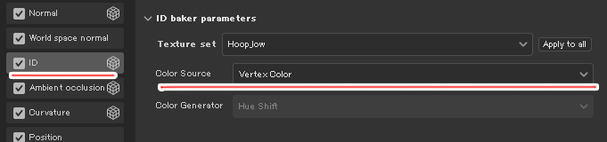 - Substance3DpainterのIDカラーマスキングするための、カラー情報が必要である