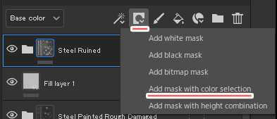 - LayersビューでAdd Maskボタンをクリックし、「Add Mask with Color Selection」を選択します。