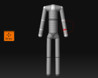 - Drawモードで、灰色のLink-Spheresをクリックして、ひじとウェストとすねとして、新しいZSphereを追加します。