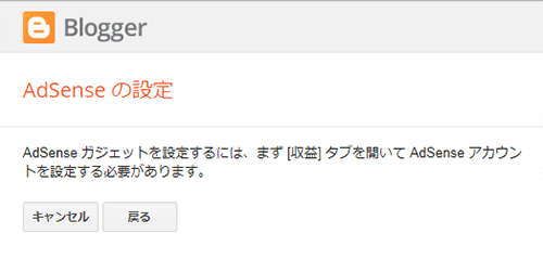 Bloggerでブログを開設、Adsense機能を利用しようとするとこんな表示になります。
