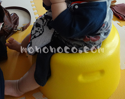 この二つを組み合わせるとお座りがまだ上手に出来なくてもこんな感じで遊べます。