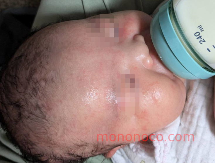 生後一ヵ月の現在、顔や頭皮、首回りとそこかしこに出ております。しかも今回は4児の中でも発生も早いし広範囲。