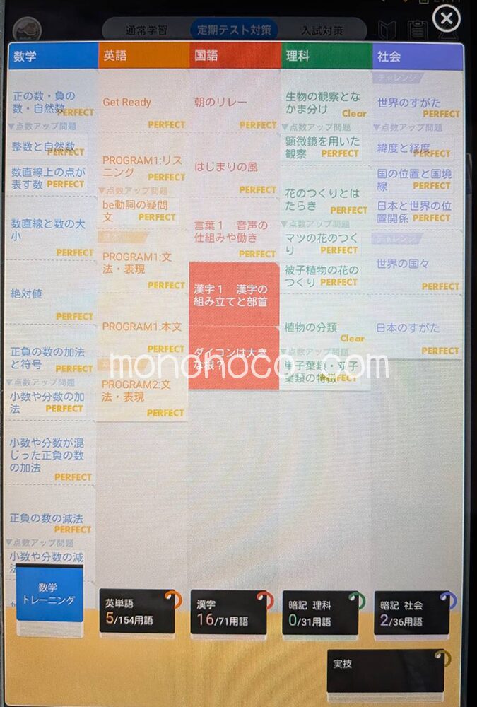 テスト2週間前から定期テストに特化したメニューが出てきます。