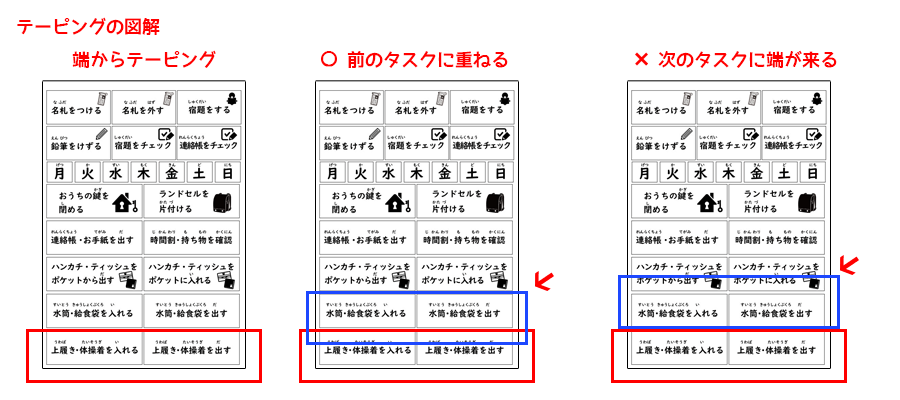 小学生のタスク1枚と子供3人分の生活面でのタスク1枚と補助イラスト1枚です。