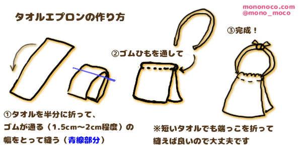 タオルやハンカチがエプロンに!【どこでもエプロン】