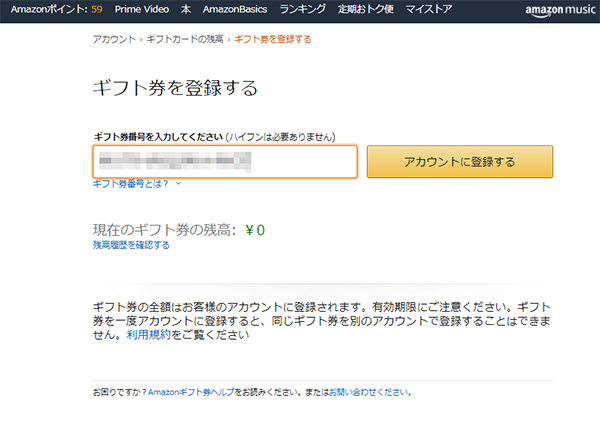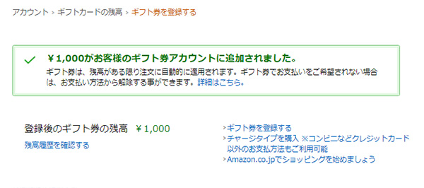 4.AMAZONギフト券をAMAZONアカウントへ登録