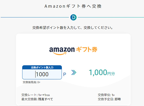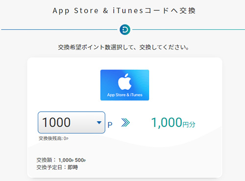AMAZONギフト券やApp Store & iTunesコードへ交換の場合はポイントが即時交換されますが