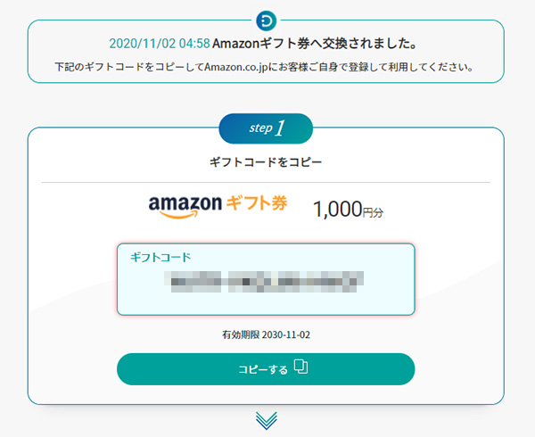 fa-check-circle-o実際にAMAZONギフト券に交換した工程