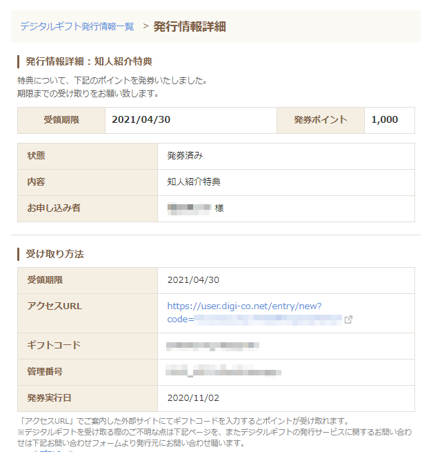 紹介者特典つきで入会して約3か月。デジタルギフトが届いたものの
