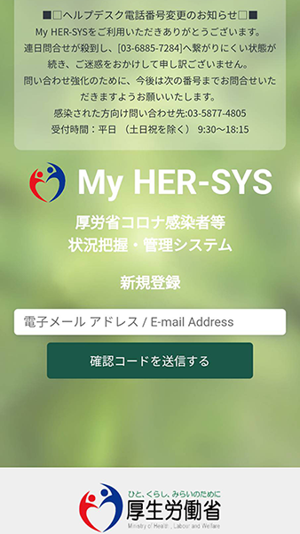4日の陽性診断を下された日に接触確認アプリCOCOAの陽性者登録と健康観察サイトMy HER-SYS(マイハーシス)登録を行いました。