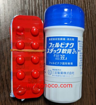 - フェルビナクスチック軟膏3%「三笠」:消炎鎮痛剤