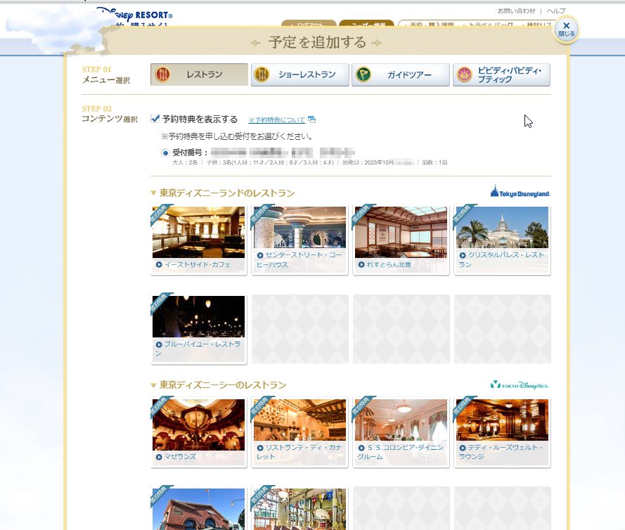 【重要】宿泊予約特典でパーク内レストランの予約