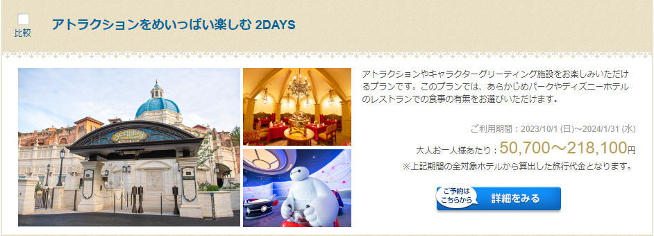 今回選んだバケーションパッケージは「アトラクションをめいっぱい楽しむ2DAYS」。