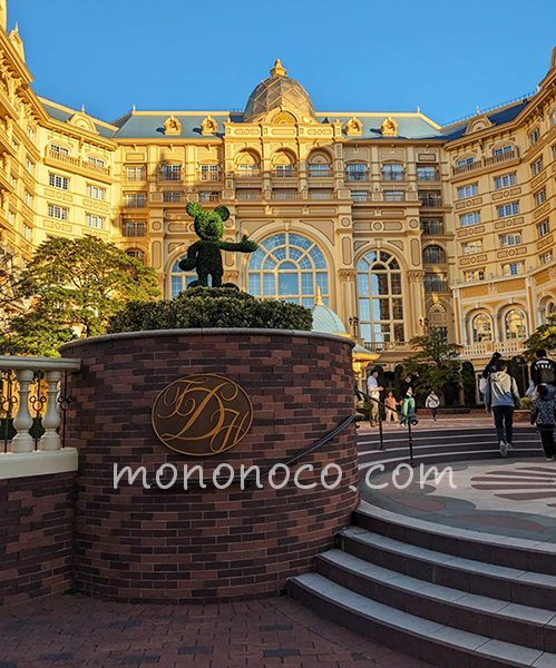 我が家が到着した7時前には既にディズニーランドホテルや近隣のディスニーホテルの宿泊者か既に100名以上は並んでいたのではないでしょうか。そのため我が家が並んだのは既にランドホテルのエントランスまで伸びた列の最後尾。