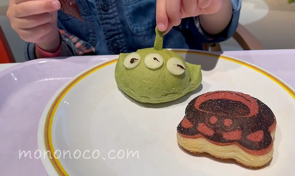 長女はリトルグリーンメンのパンにチョコペンでお絵描きを楽しんでました。(ちゃんとたべました)
