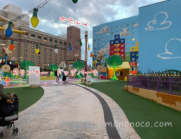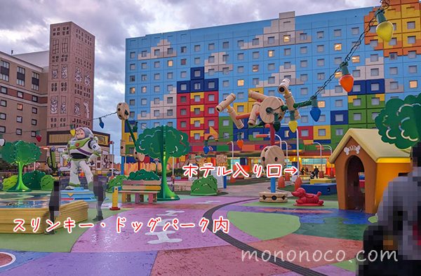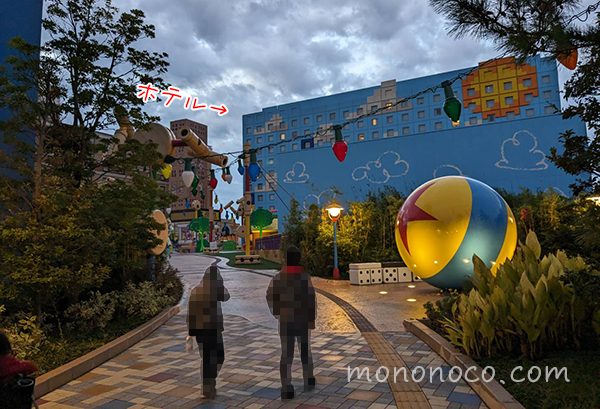 ただし、トイ・ストーリーホテルは敷地に入ってから、ホテルのロビーまで結構距離があるので、実質5~6分はかかると思っておいた方が吉です。