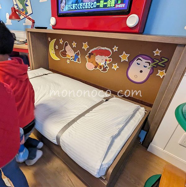 我が家が宿泊したスタンダードルームはツインベッド2(添い寝各1名可)、トランドルベッド1(添い寝不可)、プルダウンベッド1(添い寝不可)の部屋のため、小学生以下の子どもが2名以上いれば、最大6名宿泊できることになります。